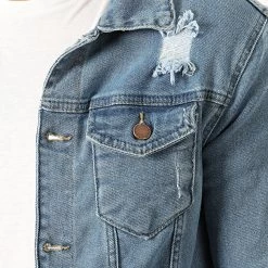 Budget 🛒 Veste Jean Zippée ZVS-011 Bleu Denim de Zayne Paris ⌛