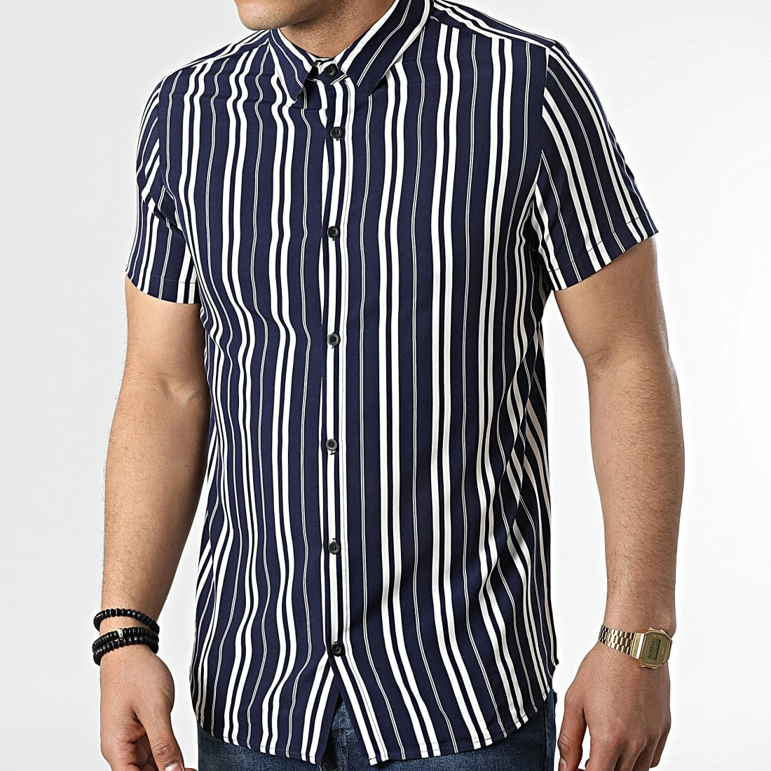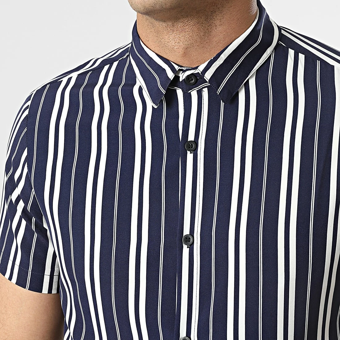 • Chemise à manches courtes avec motif à rayures imprimé all over