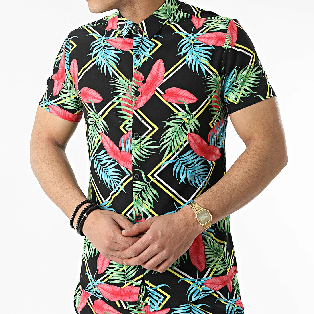 âąÂ Ensemble chemise Ă manches courtes et short jogging tendance avec motif floral imprimĂ© all over