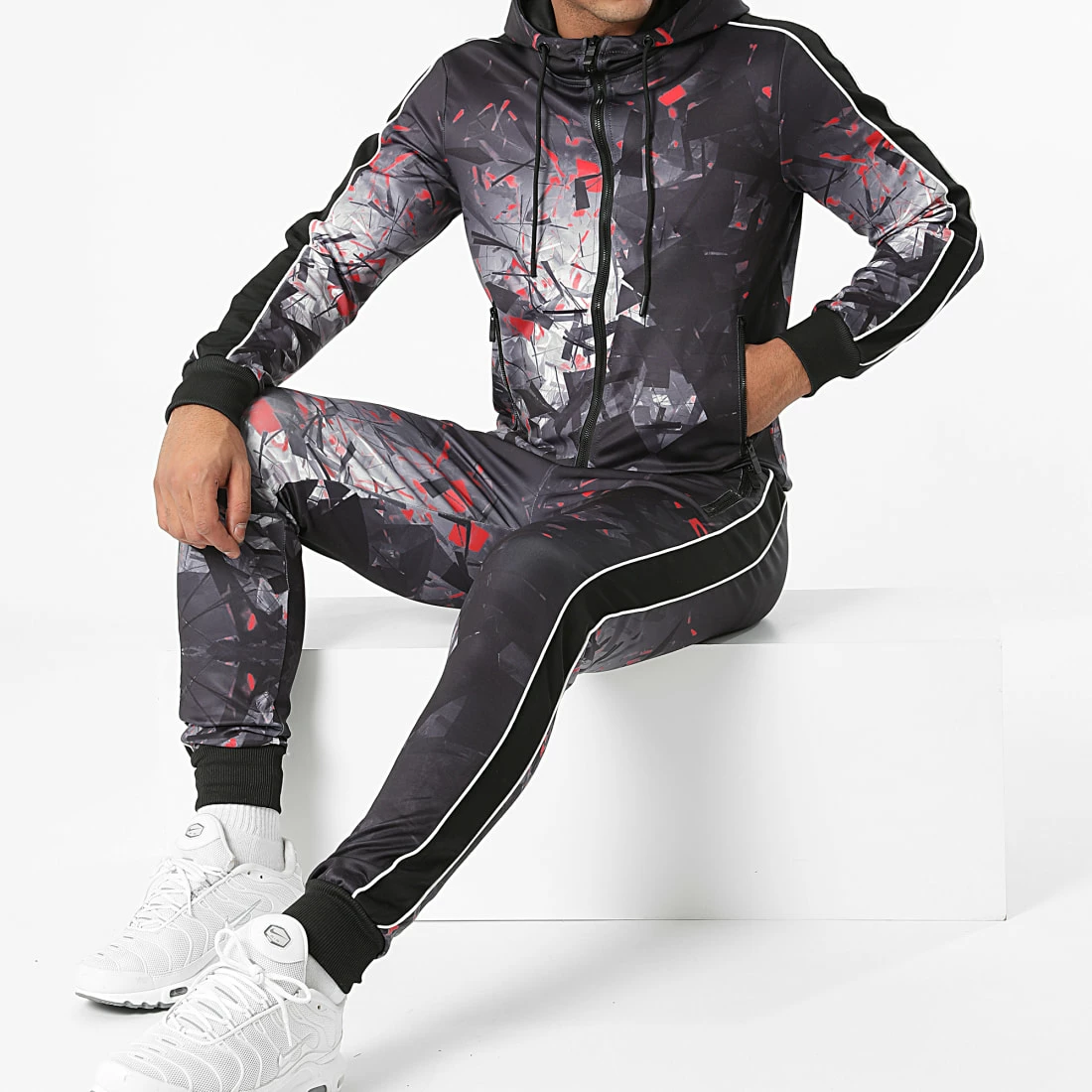 • Ensemble de survêtement stretch imprimé motif et brodé bandes