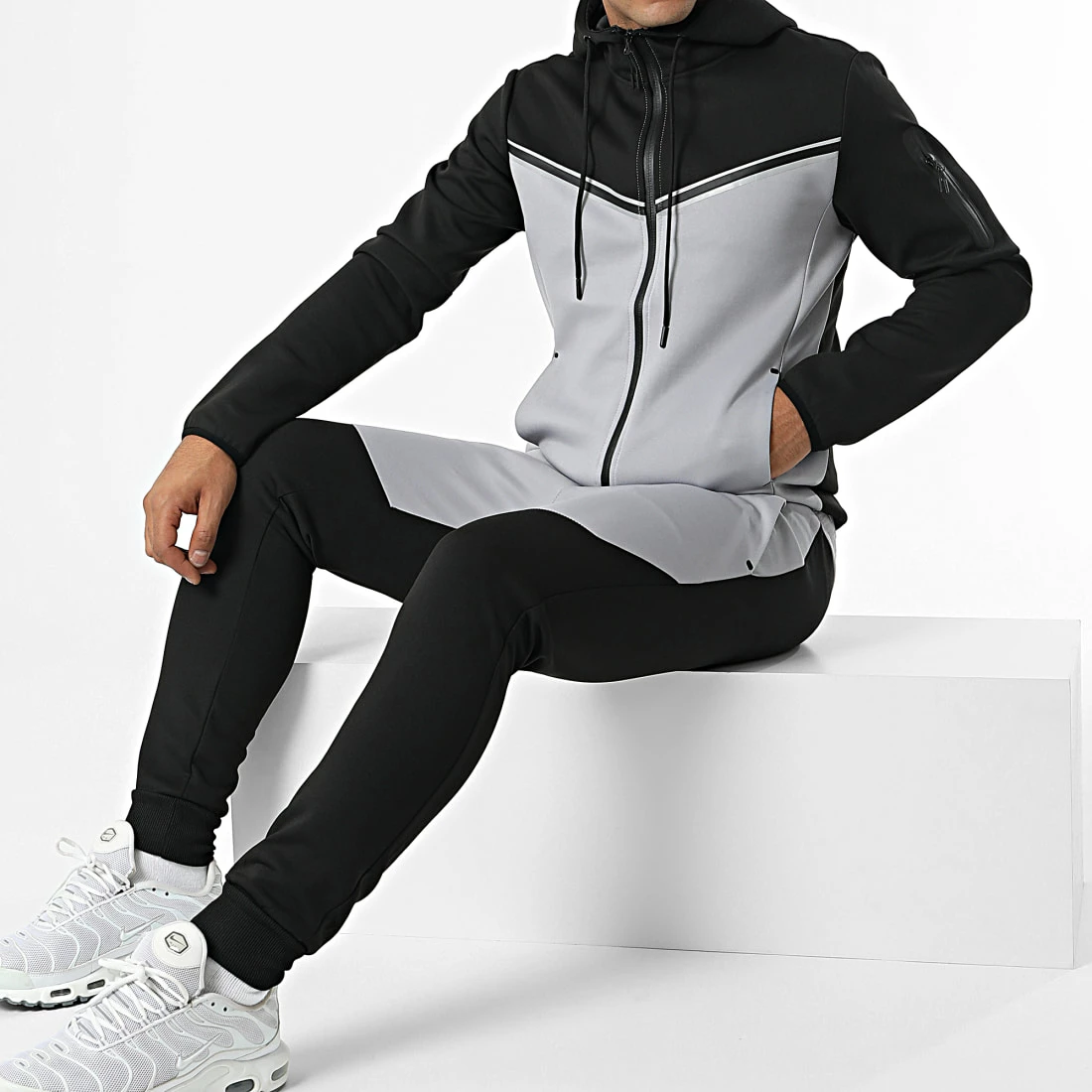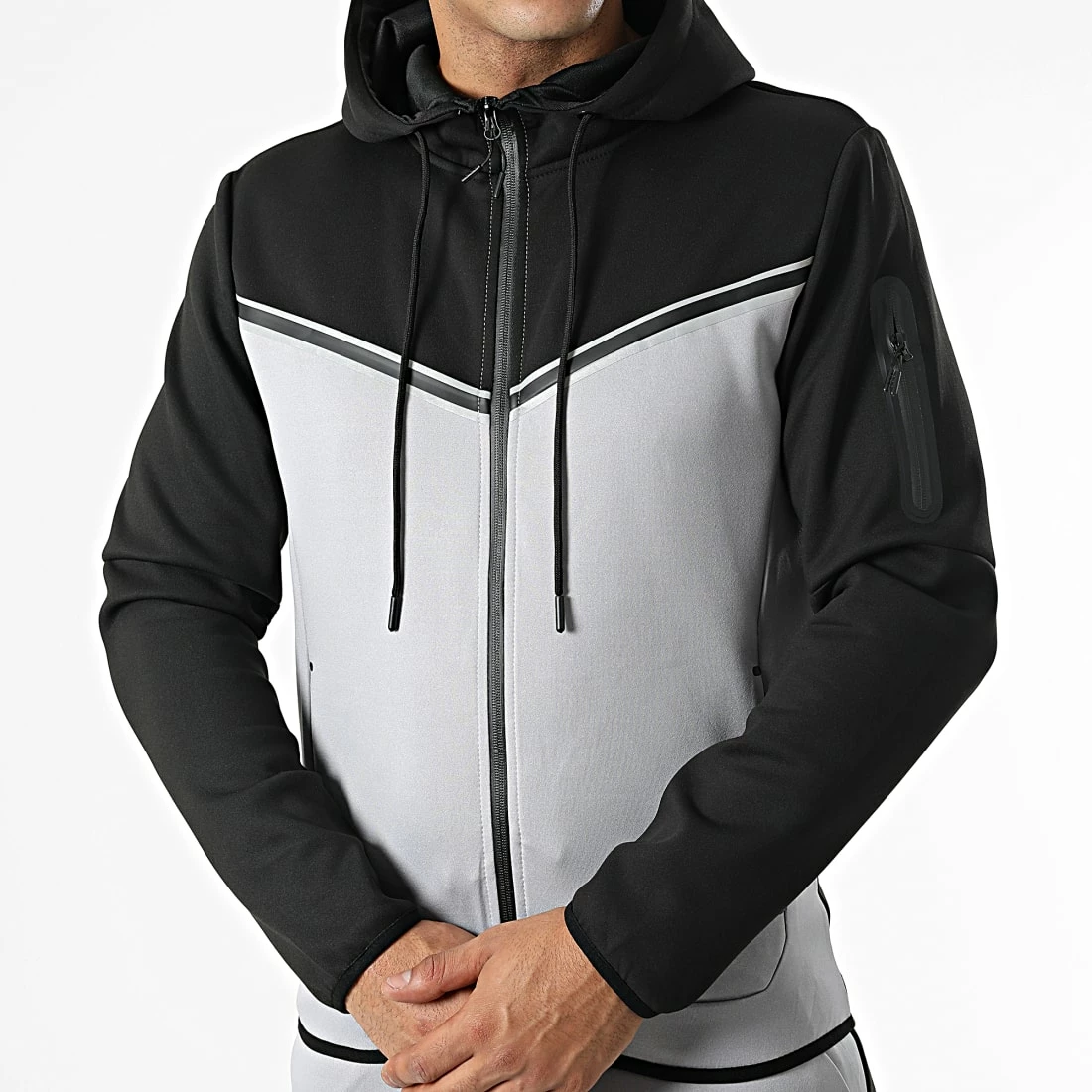 • Ensemble sweat zippé capuche et pantalon jogging bicolore tendance