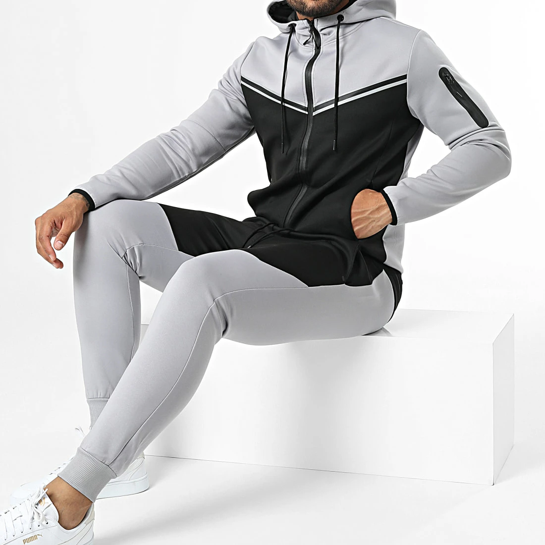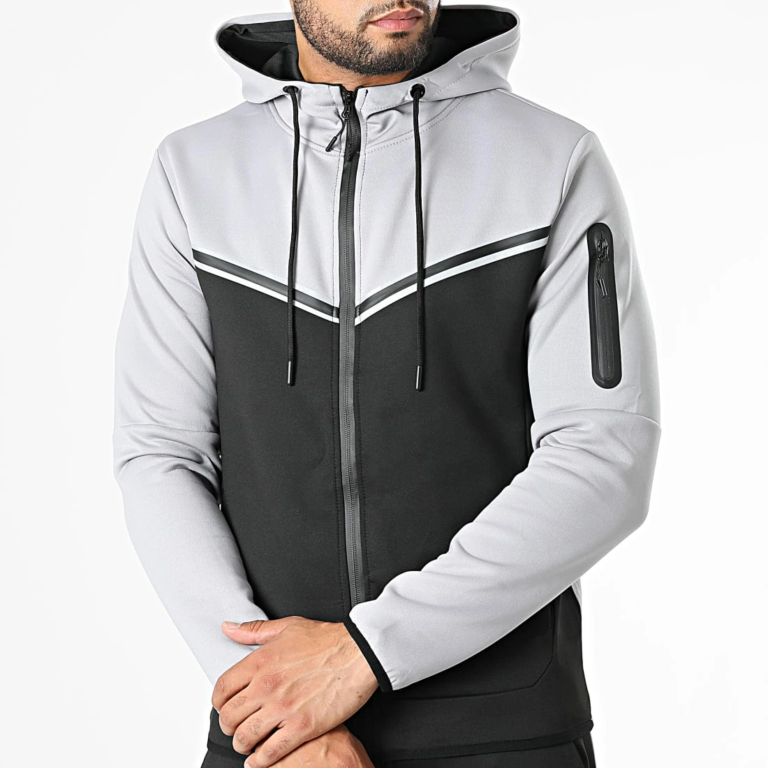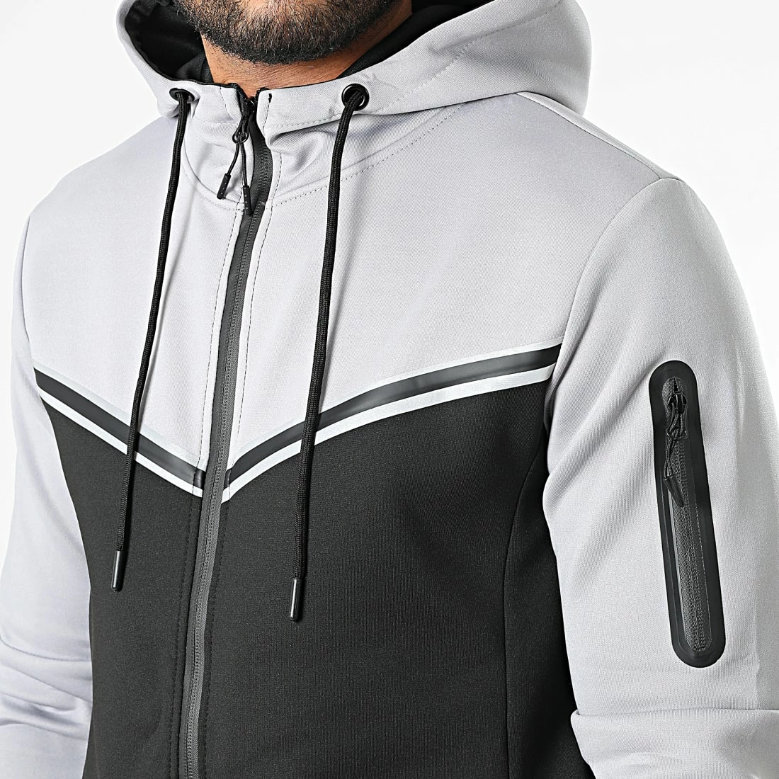 • Ensemble sweat zippé capuche et pantalon jogging bicolore tendance