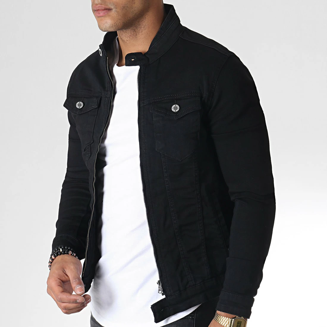 • Veste jean en coton uni et stretch