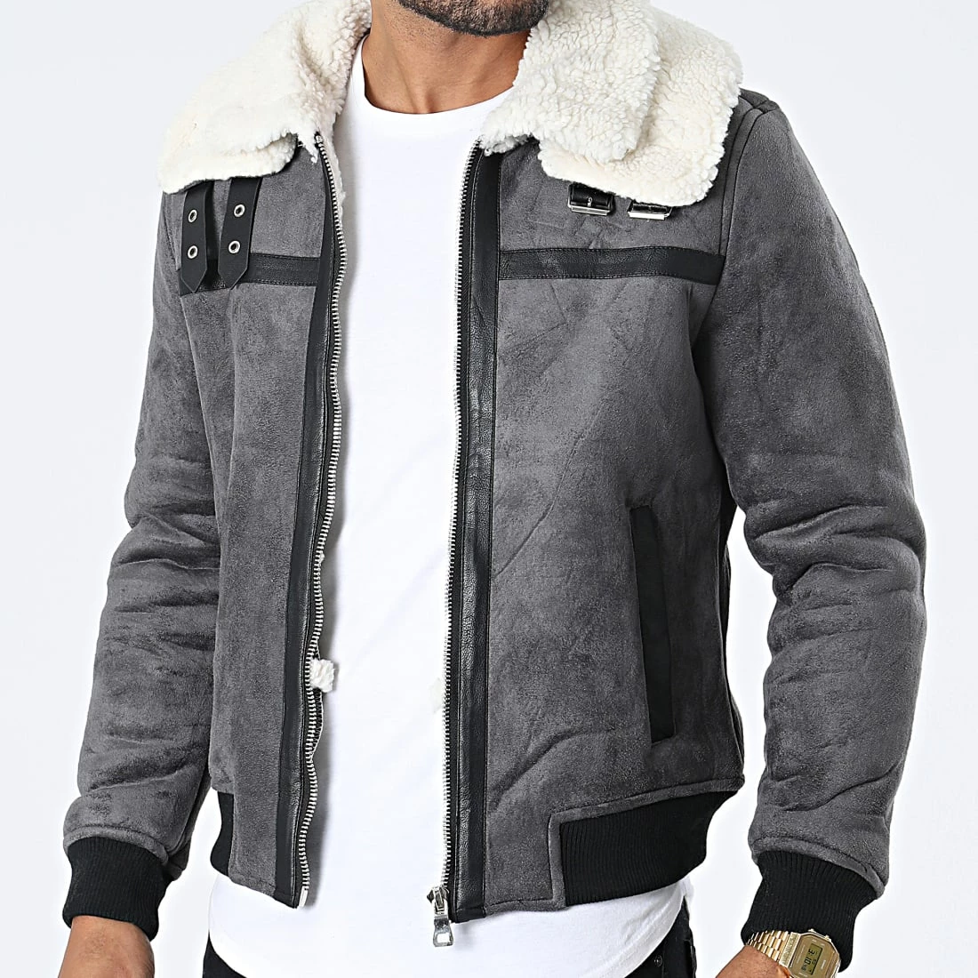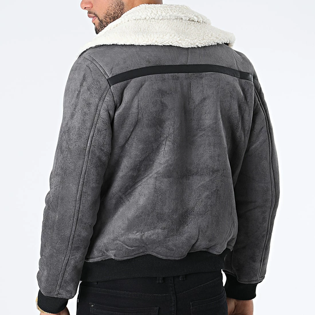 • Veste zippé confortable aspect suédine avec col mouton
