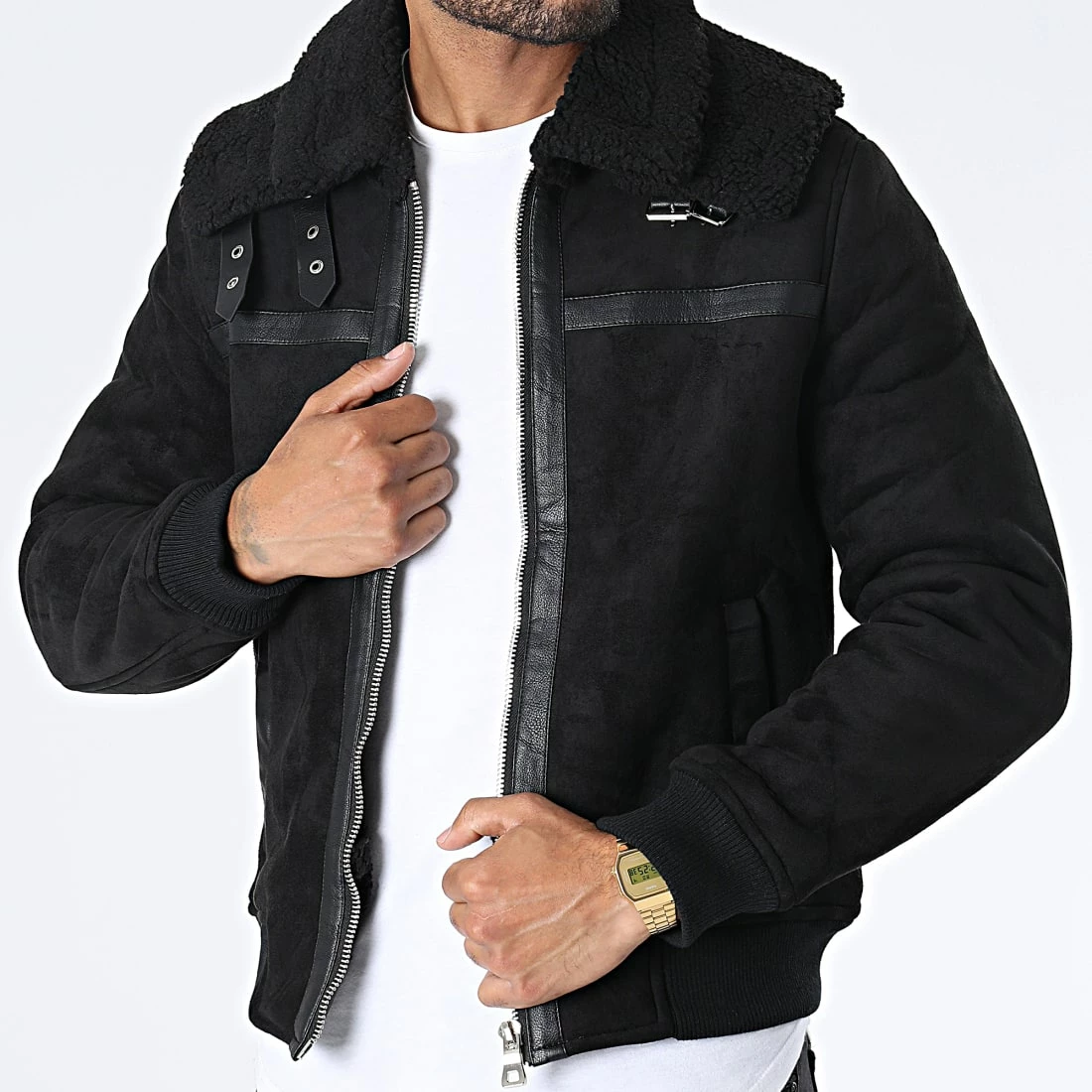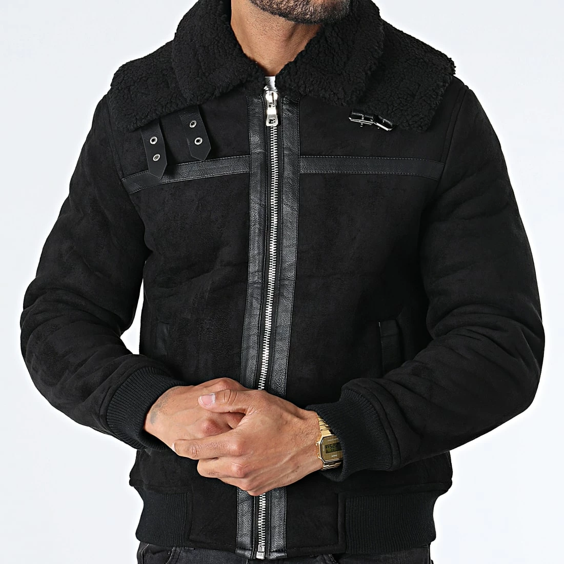 • Veste zippé confortable aspect suédine avec col mouton