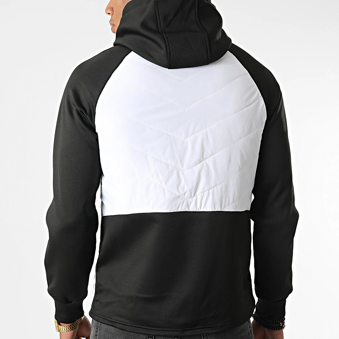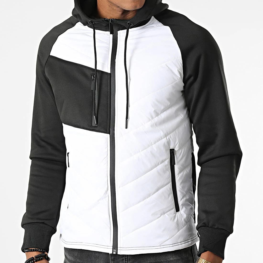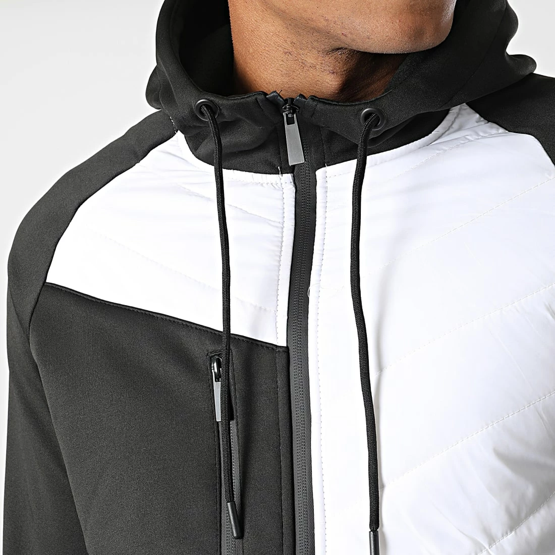 • Veste zippée capuche bicolore et bi-matière tendance